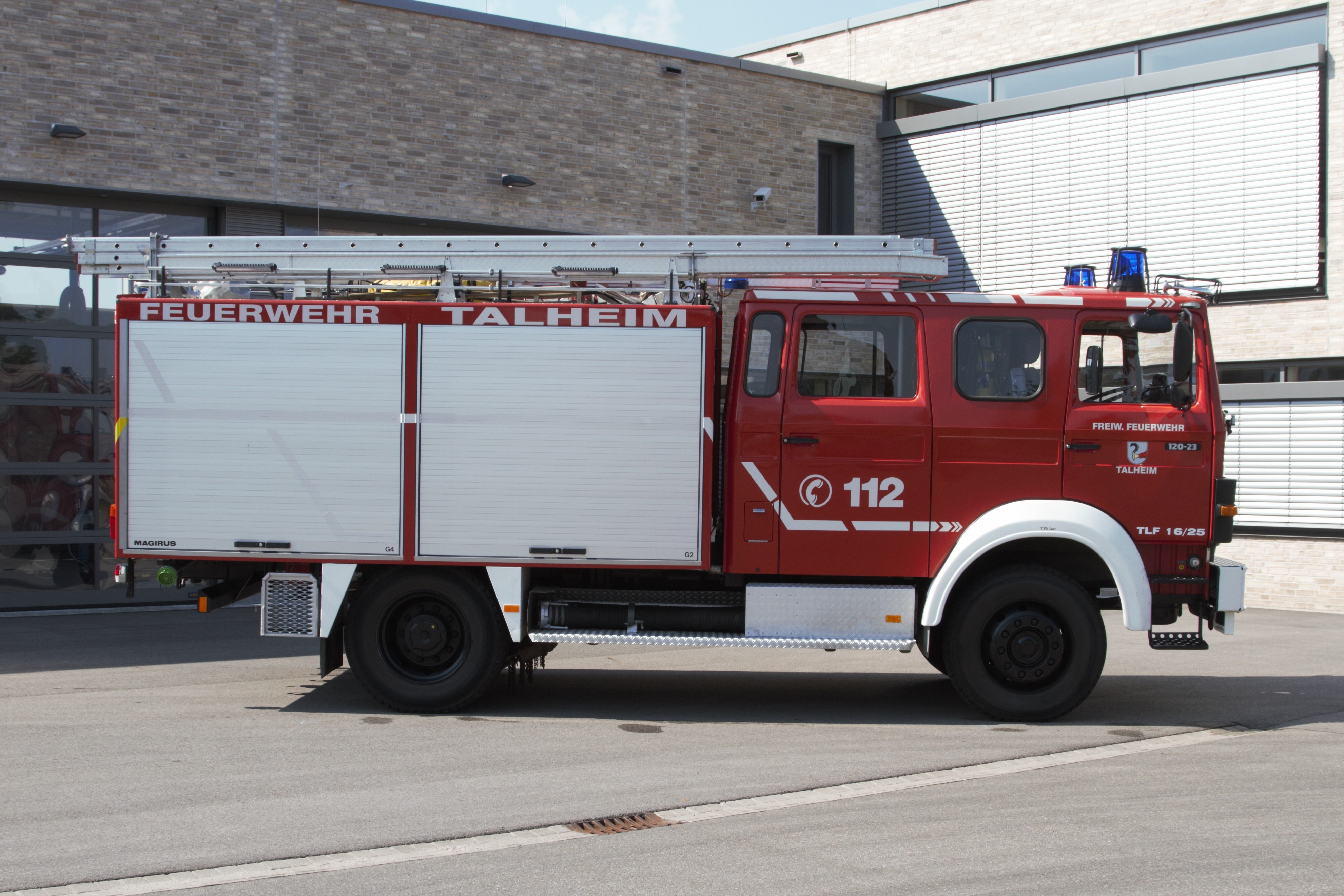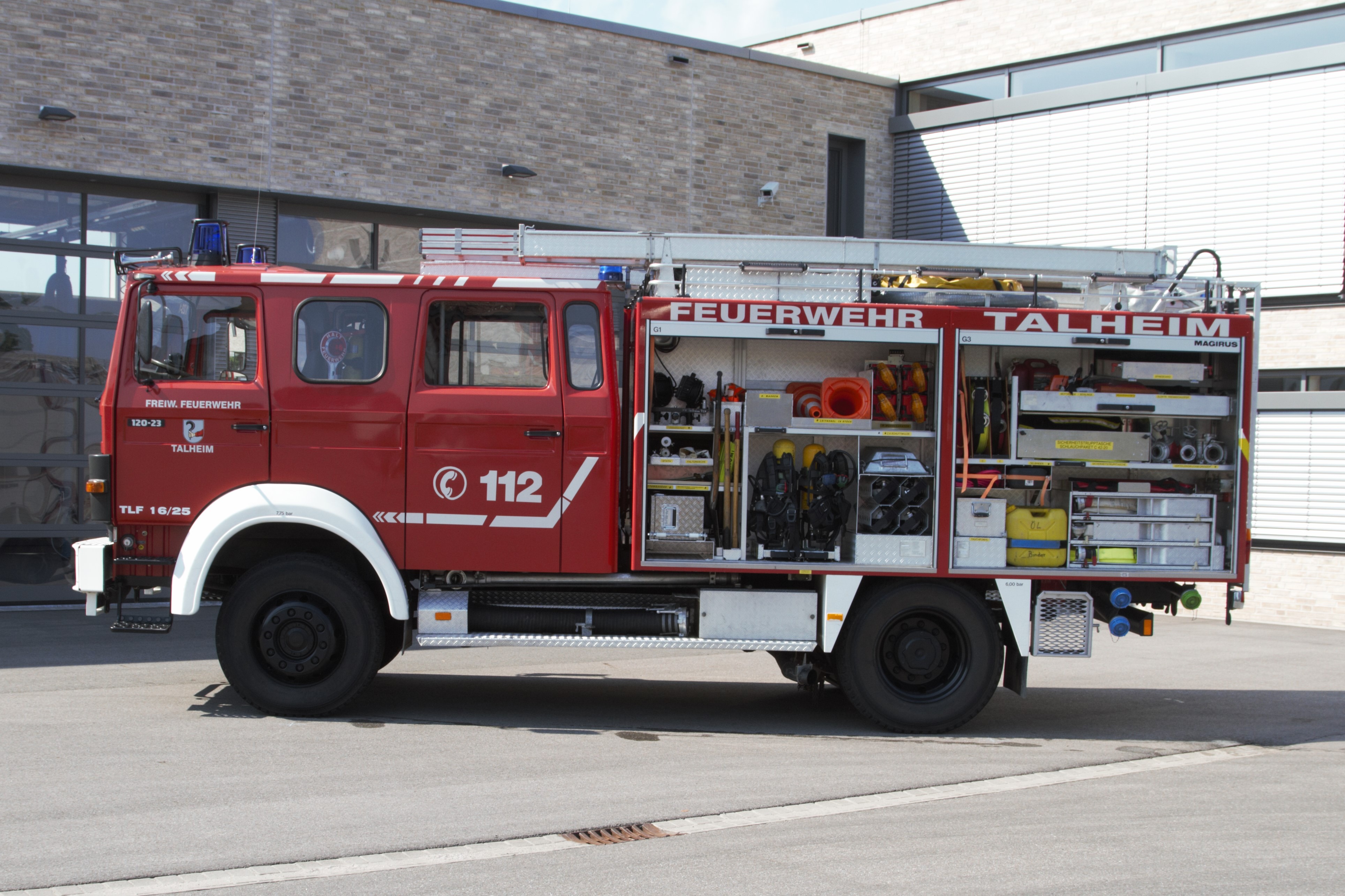Das Tanklöschfahrzeug 16/25 der Feuerwehr Talheim diente über viele Jahre als erstausrückendes Einsatzfahrzeug bei Brandeinsätzen. Mit der Indienststellung des HLF 20 wurde diese Aufgabe übernommen. Heute stellt das TLF 16/25 insbesondere die Löschwasserversorgung sicher und unterstützt die Brandbekämpfung bei größeren Schadenslagen sowie bei Einsätzen mit eingeschränkter Wasserversorgung im Gemeindegebiet.